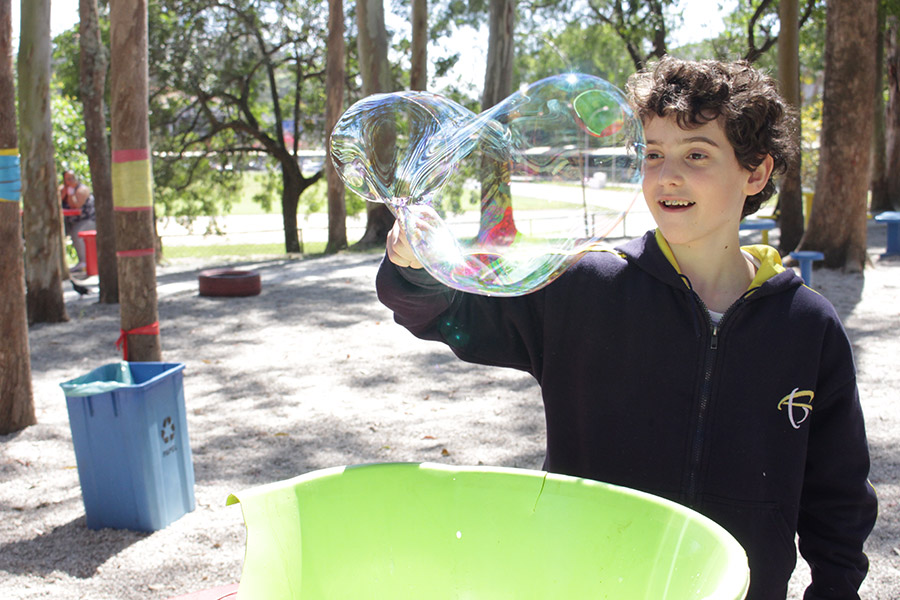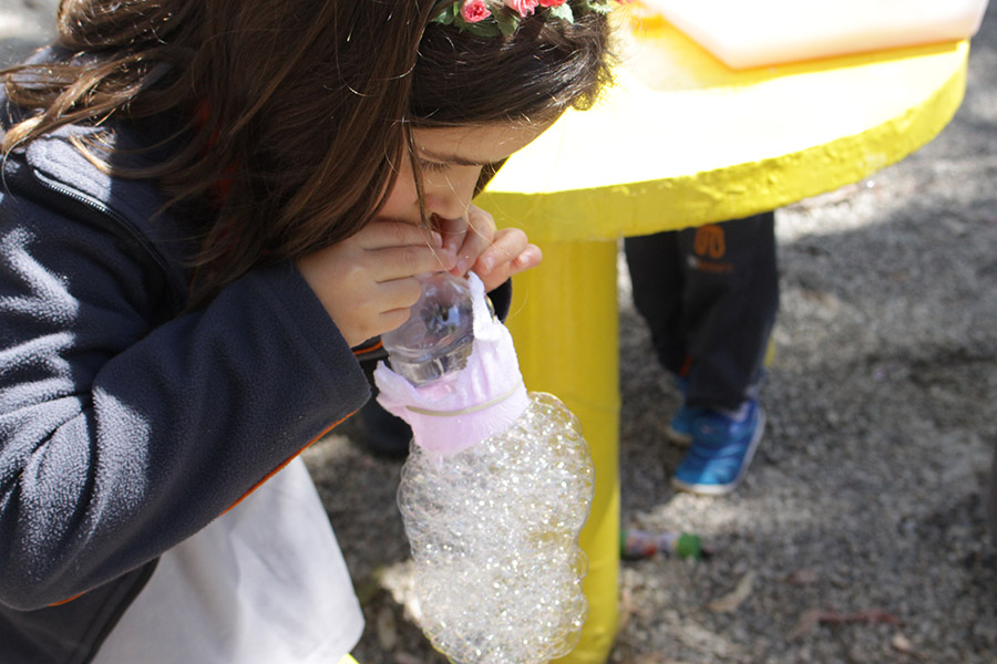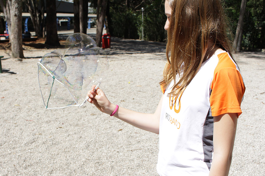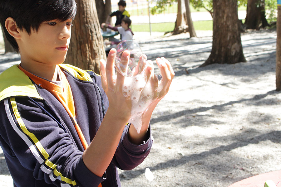 Alunos representam a Atmosfera com bolhas de sabão