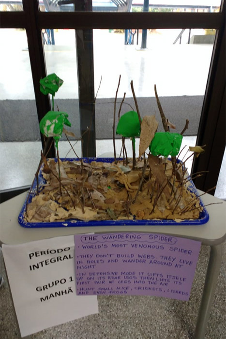 A partir dessas perguntas, a professora Ariane, juntamente com sua turma, apresentou o novo projeto do Green Club - Projeto Animais com Veneno. O primeiro animal escolhido para pesquisarem foi a aranha.