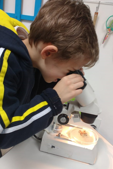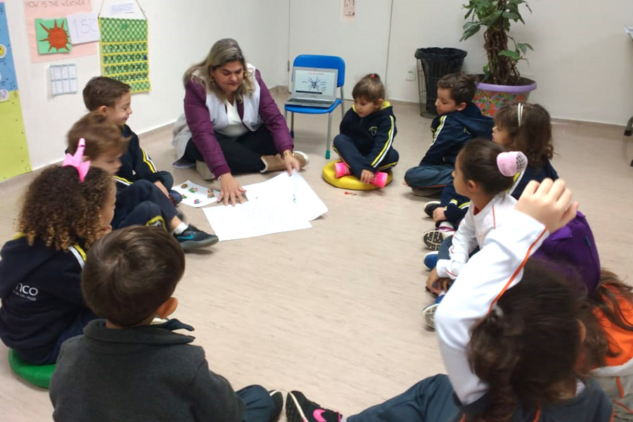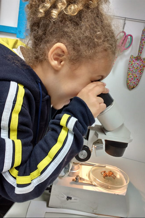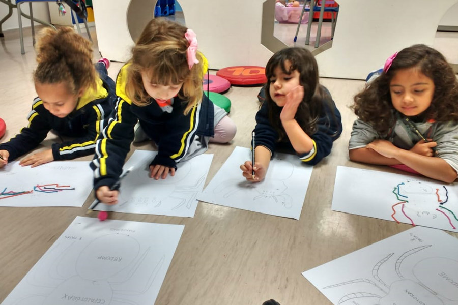 Para dar início às pesquisas sobre a aranha, a bióloga e professora de Ciências do Fundamental II, Elaine Lupiani, foi convidada para conversar e responder as dúvidas e curiosidades dos alunos. Além disso, as crianças tiveram a oportunidade de ver bem de pertinho, utilizando a lupa eletrônica, o corpo da aranha trazida pela professora.
