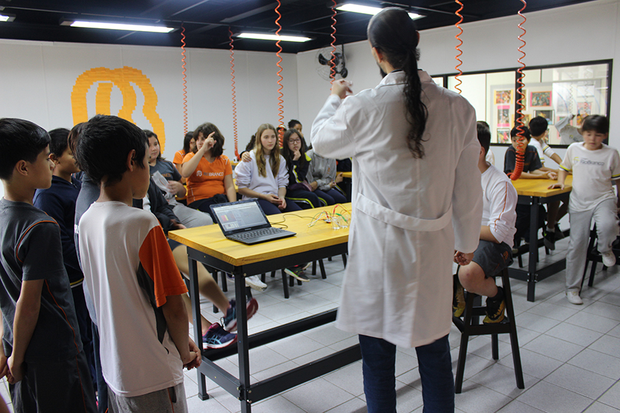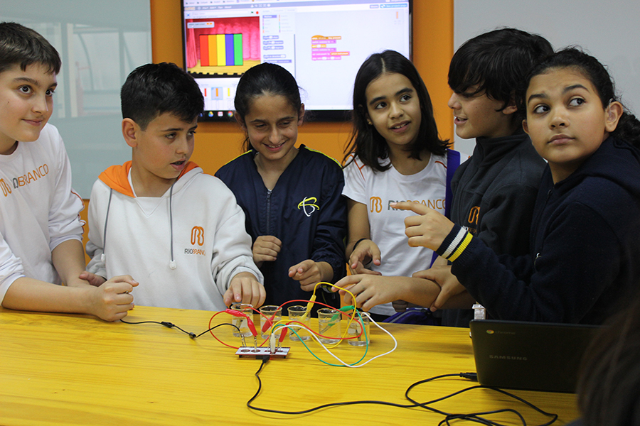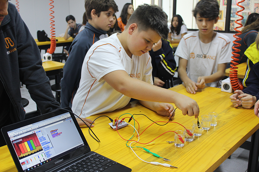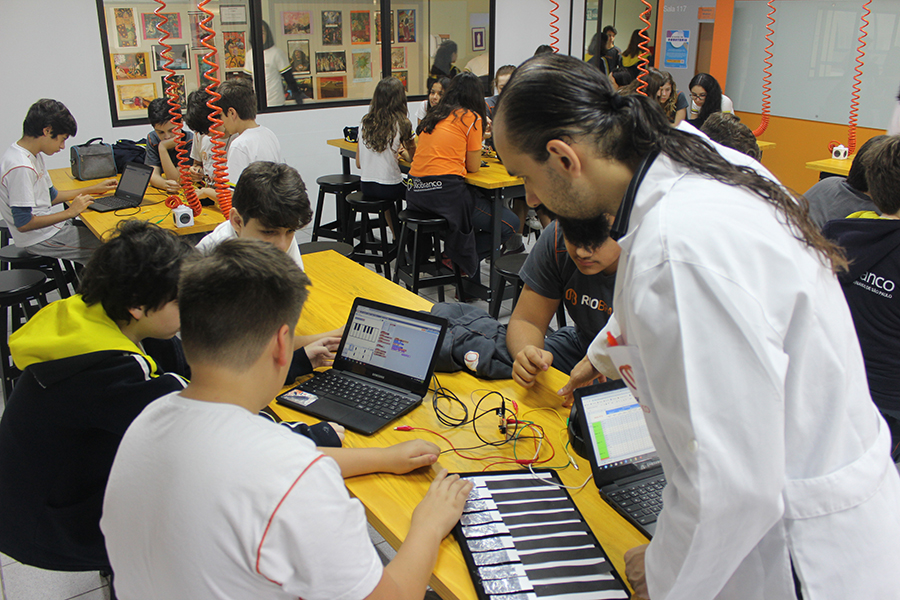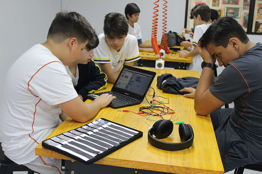 Nos dias, 24 e 28 de setembro, em Higienópolis e Granja Vianna, respectivamente, os alunos do 6º, 7º e 8º anos do Ensino Fundamental inauguraram o laboratório e já participaram de uma atividade. “Eles montaram protótipos de pianos, guitarras e joysticks, em conjunto com o Scratch - plataforma online de programação, utilizando materiais condutores, como massinha de modelar, clipes, desenhos em grafite, papel alumínio, copos d'água e partes do corpo”, destacou o professor Jorge Farias.