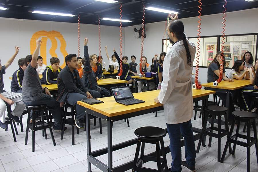 Esse espaço será utilizado nas aulas do Módulo Interdisciplinar Cotidiano em Questão - CoQuest, que envolve três áreas do conhecimento: Ciências da Natureza, Ciências Humanas e Cultura Maker, e propõe que os alunos naveguem pelas três áreas para discutir, construir projetos e trabalhos sobre um mesmo tema e solucionar problemas relacionados ao cotidiano. Os Cursos Livres, como Robótica e Game Factory, também irão iniciar seus trabalhos no CreateLAB.