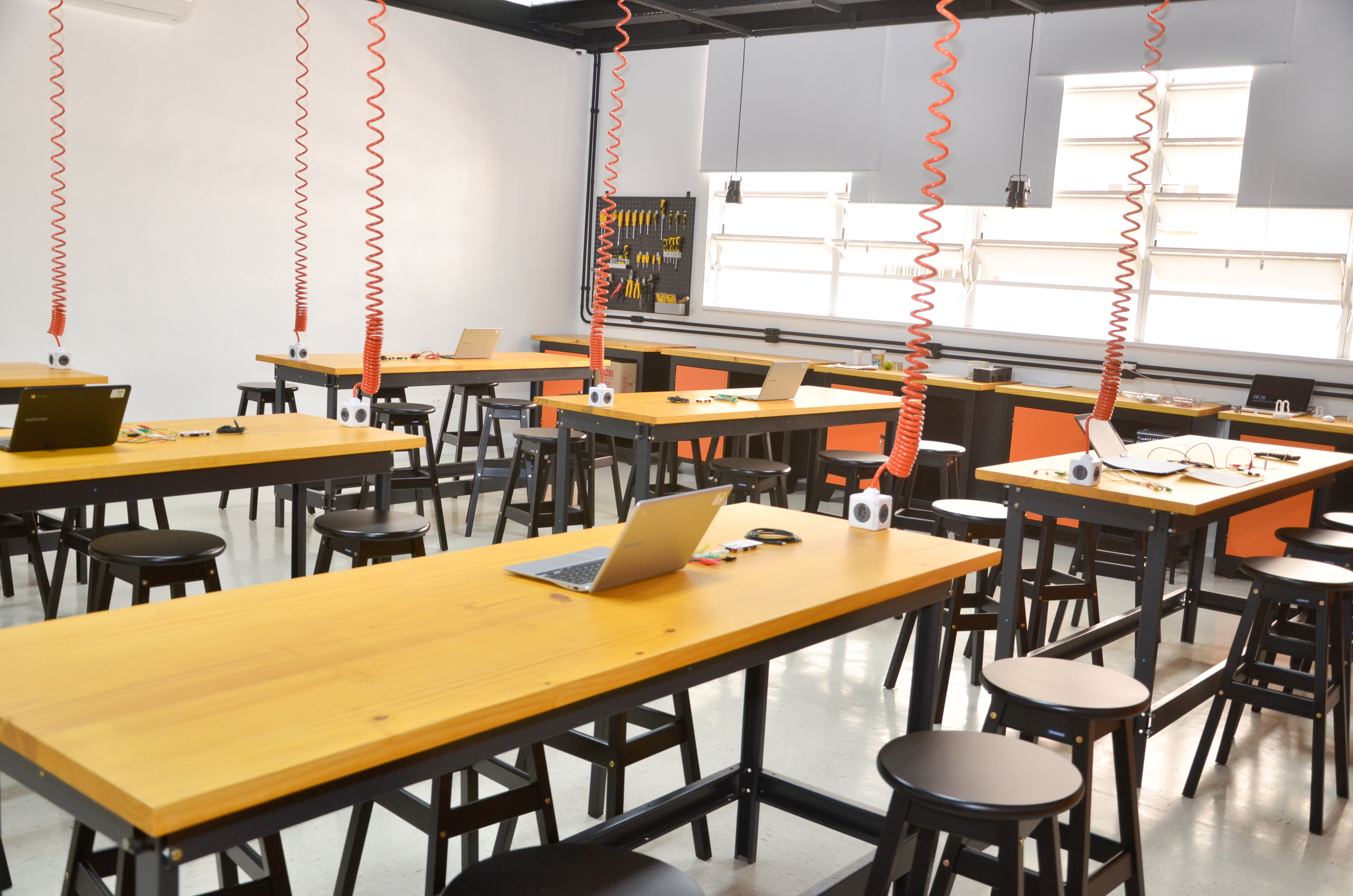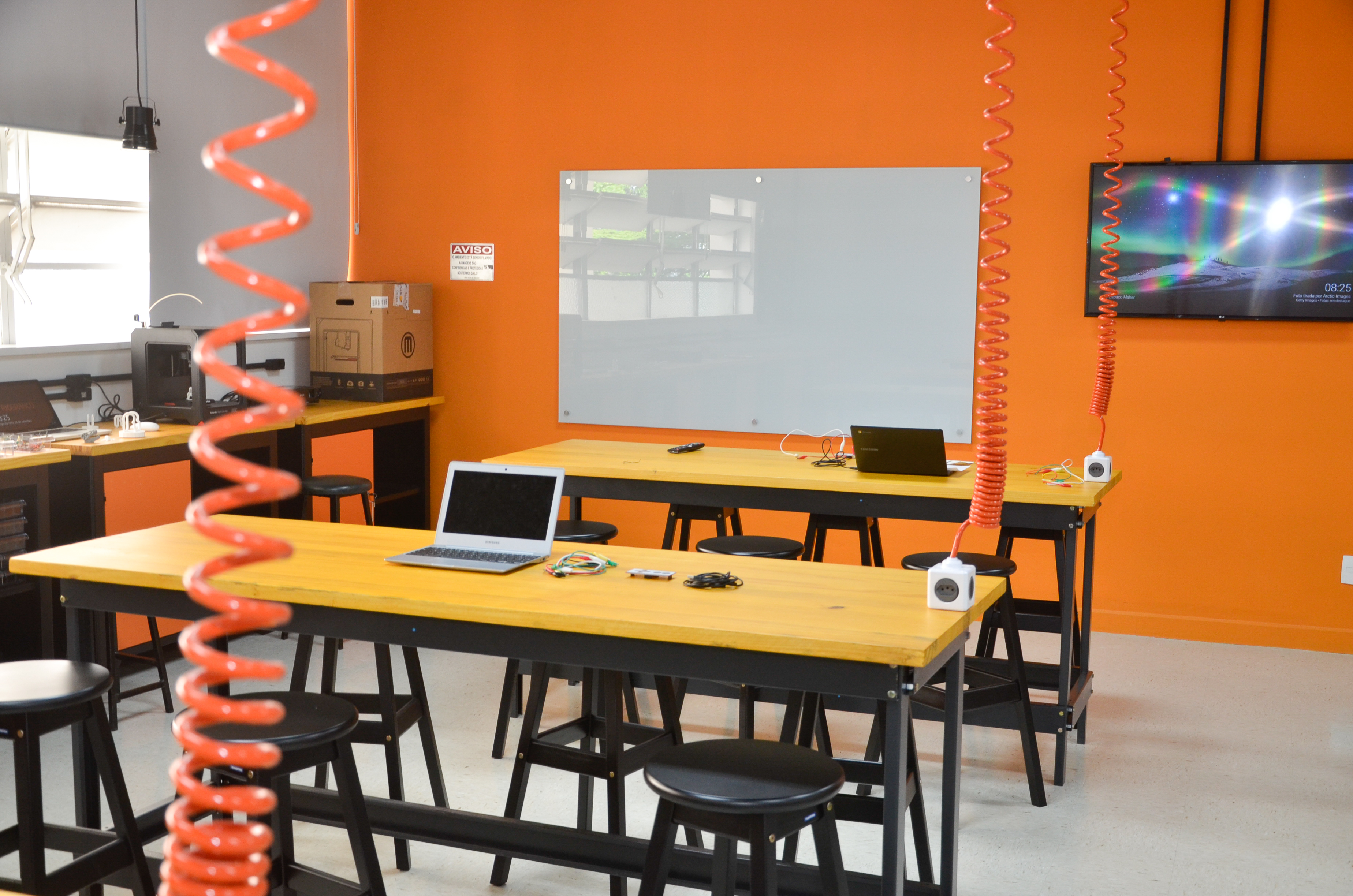 Os ambientes contam com impressoras 3D, programa modelador de objetos 3D, equipamentos robóticos, componentes eletrônicos, ferramentas manuais, além dos itens básicos de laboratório de tecnologia: televisão, projetor, tablets e notebooks.
