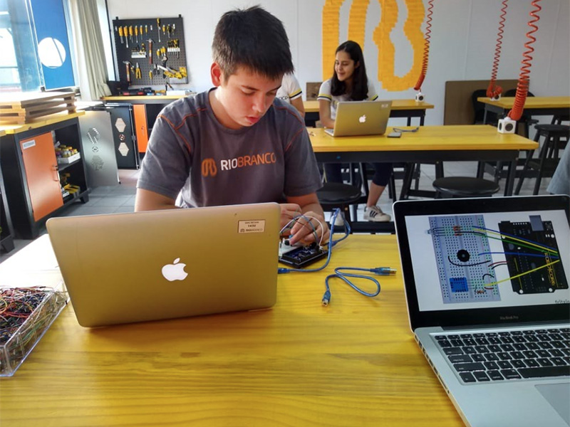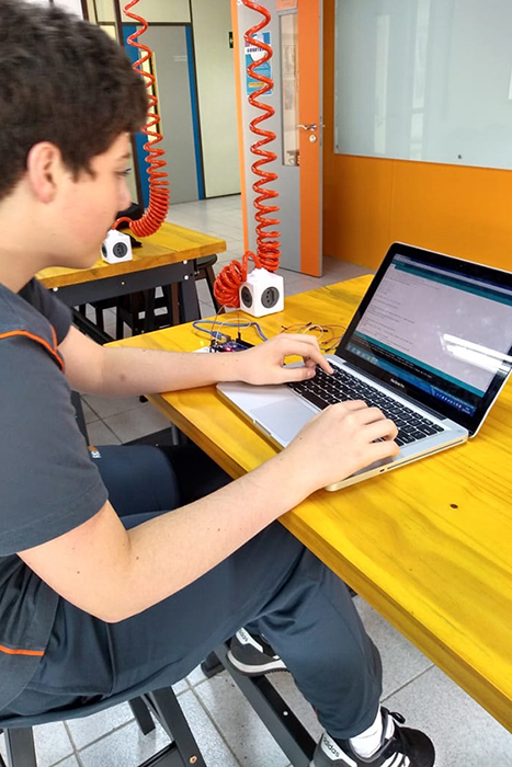 Nessa primeira atividade do módulo, os alunos trabalharam com uma placa de circuito eletrônico arduíno e experimentaram os principais conceitos eletrônicos e de programação simulando um farol.