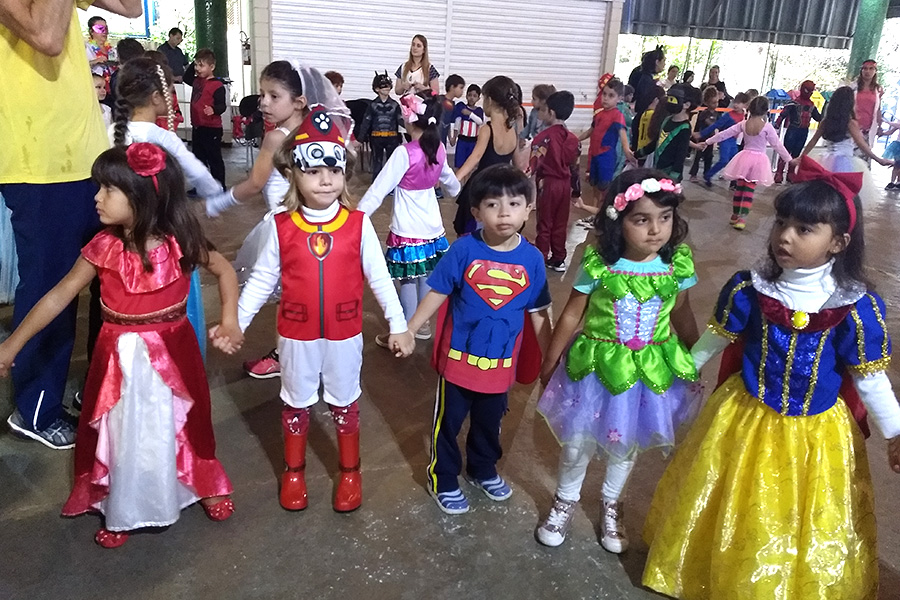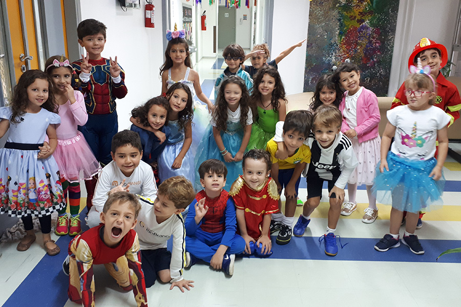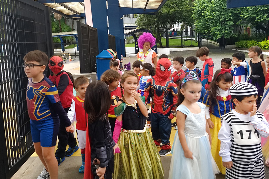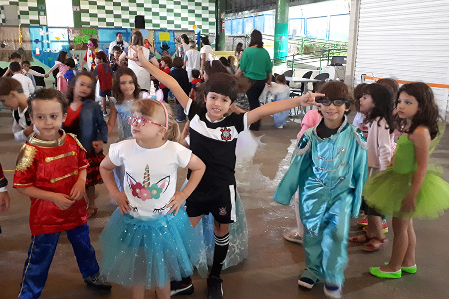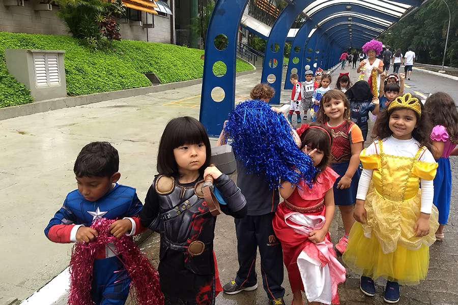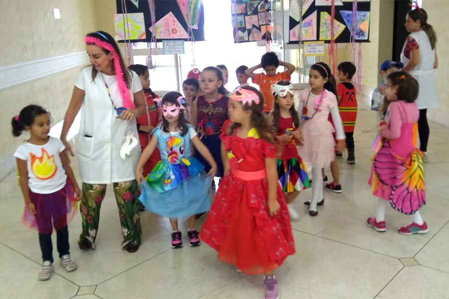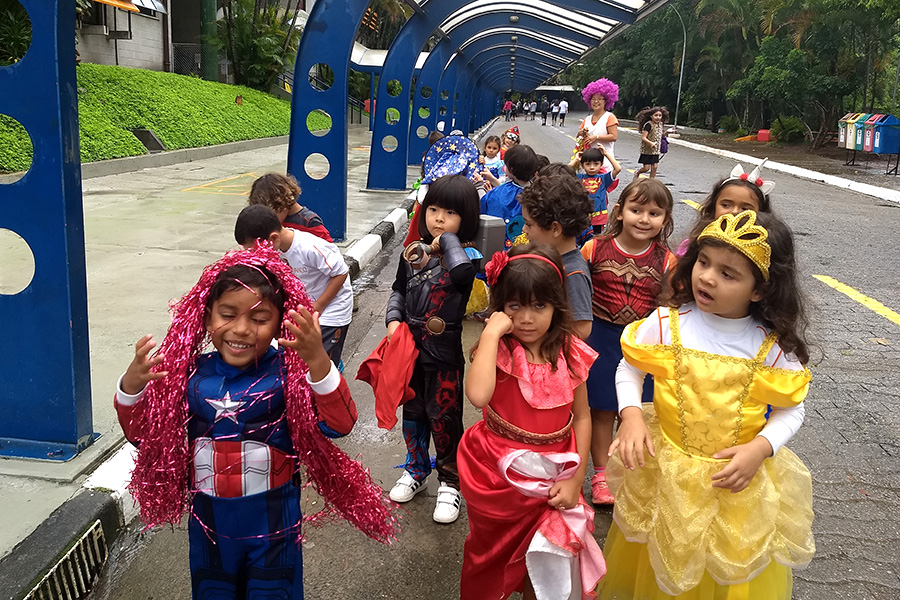 Os alunos fantasiados para o Carnaval na Unidade Granja Vianna