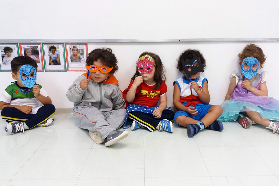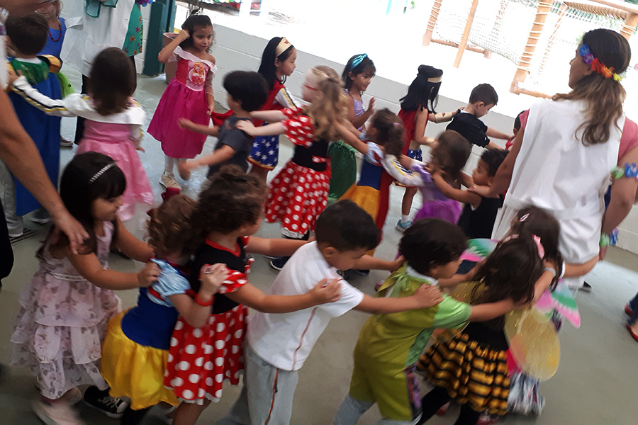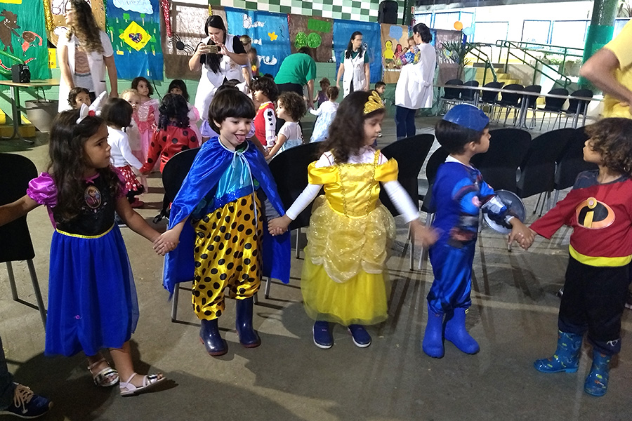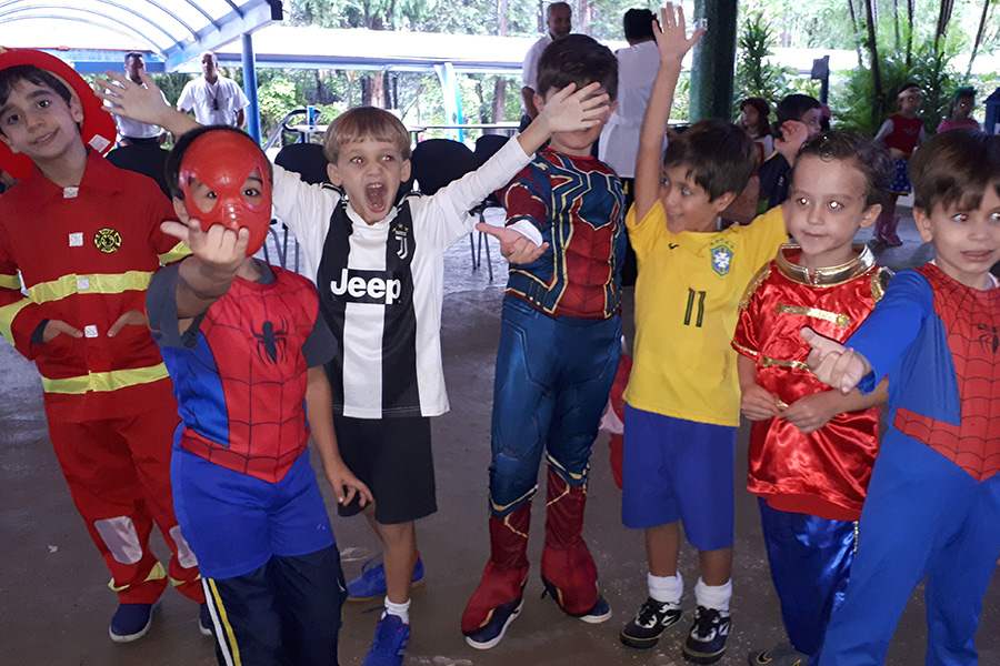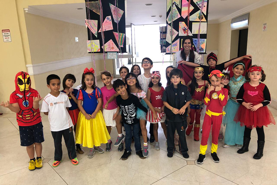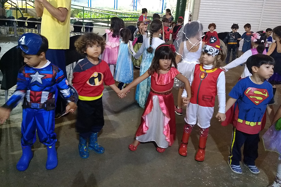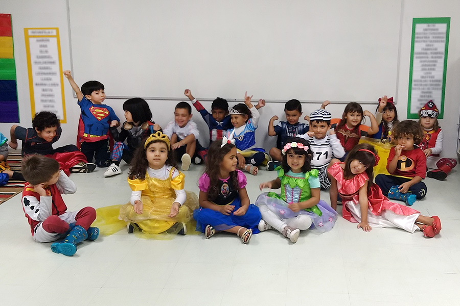 Os alunos fantasiados para o Carnaval na Unidade Granja Vianna