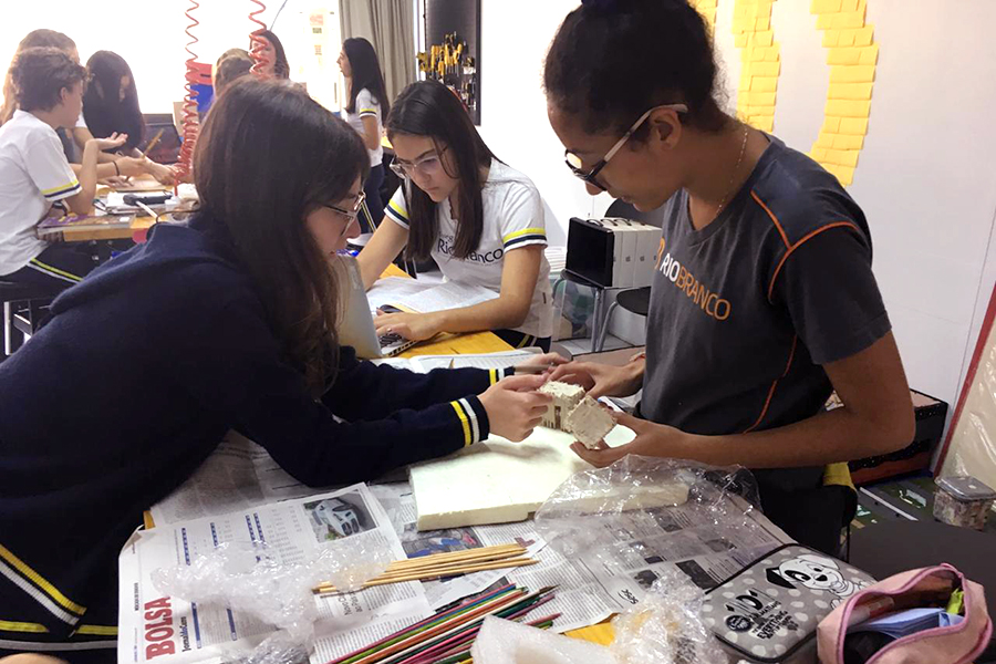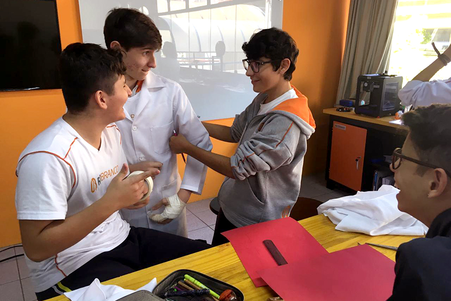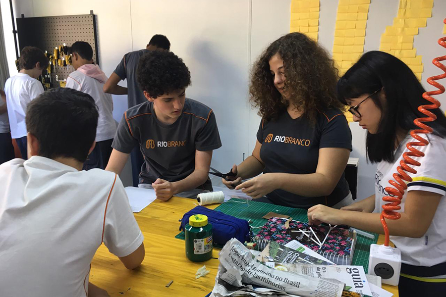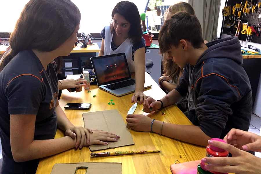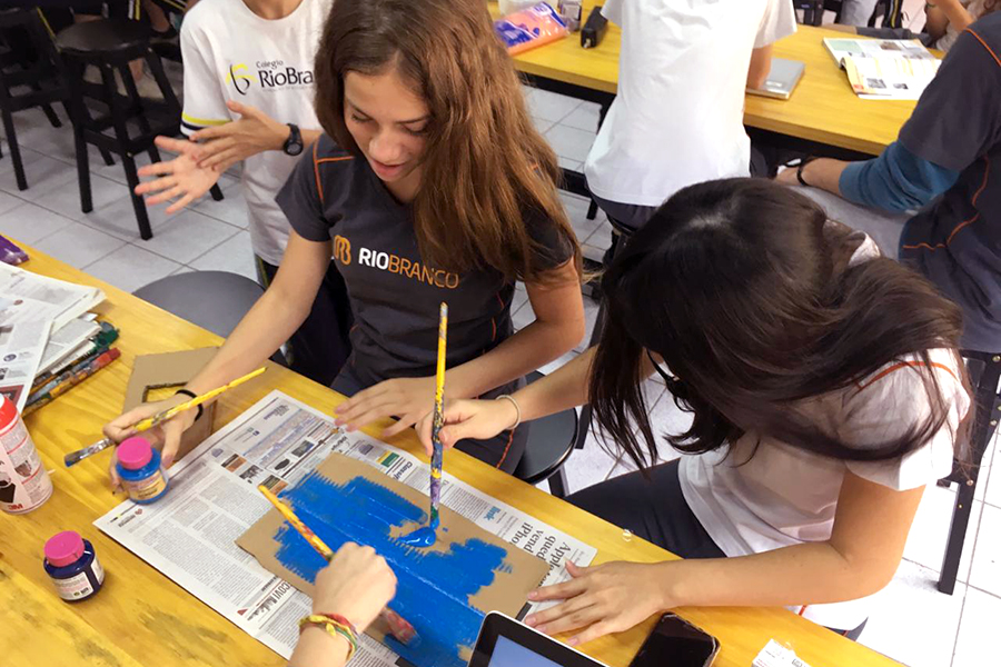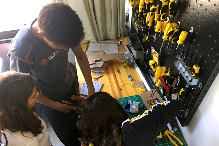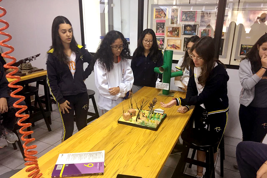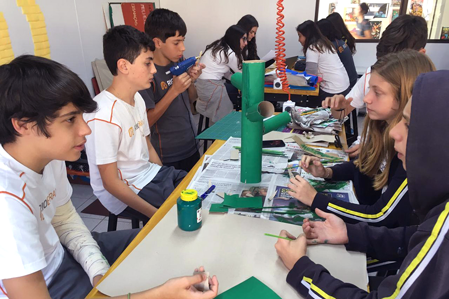 Em um segundo momento, os grupos trabalharam no CreateLAB, espaço de criatividade e inovação. Muitos grupos associaram sucata e materiais tradicionais, como papelão, cola e tinta, às produções feitas na impressora 3D. De volta à sala de aula, os alunos elaboraram mapas mentais e analisaram algumas imagens, apresentadas na exposição em cartaz no hall de entrada do prédio do Ensino Fundamental II.