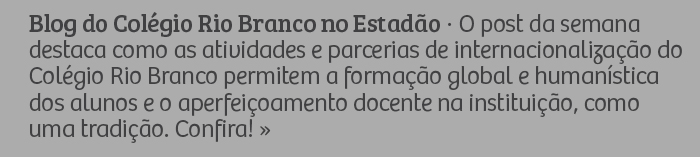 Blog do Colégio Rio Branco no Estadão - O post da semana destaca como as atividades e parcerias de internacionalização do Colégio Rio Branco permitem a formação global e humanística dos alunos e o aperfeiçoamento docente na instituição, como uma tradição. Confira!