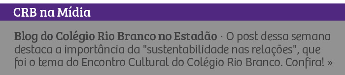 Você está cadastrado na base de dados do Colégio Rio Branco, que respeita a sua privacidade e é contra o spam na rede. Adicione nossos e-mails comunicados@mail.comunicacrb.com.br e frsp-mkt@mkt.frsp.org aos seus contatos para receber com sucesso nossos e-mails. Os assuntos dos e-mails podem, eventualmente, aparecer sem acentuação porque alguns servidores não a reconhecem. Este é um e-mail automático. Por favor, não responda. Para entrar em contato conosco, mande uma mensagem através do nosso canal de relacionamento. Colégio Rio Branco | www.crb.g12.br |