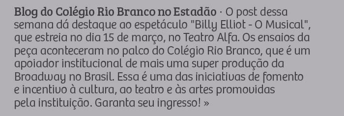 Rio Branco apoia o espetáculo “Billy Elliot, O Musical”