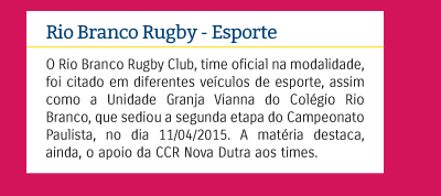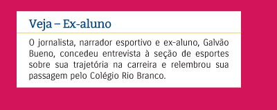 Você está cadastrado na base de dados do Colégio Rio Branco, que respeita a sua privacidade e é contra o spam na rede. Adicione nosso e-mail frsp-mkt@mkt.frsp.org aos seus contatos para receber com sucesso nossos e-mails. Os assuntos dos e-mails podem, eventualmente, aparecer sem acentuação porque alguns servidores não a reconhecem. Este é um e-mail automático. Por favor, não responda. Para entrar em contato conosco, mande uma mensagem através do nosso canal de relacionamento. Colégio Rio Branco | www.crb.g12.br |